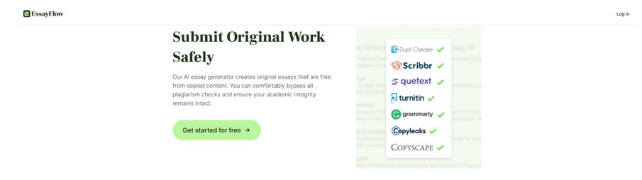 • Plagiarism-free Content Creation: With a staunch commitment to originality, EssayFlow ensures that every essay generated through its platform is free of plagiarism, fostering confidence among its users.